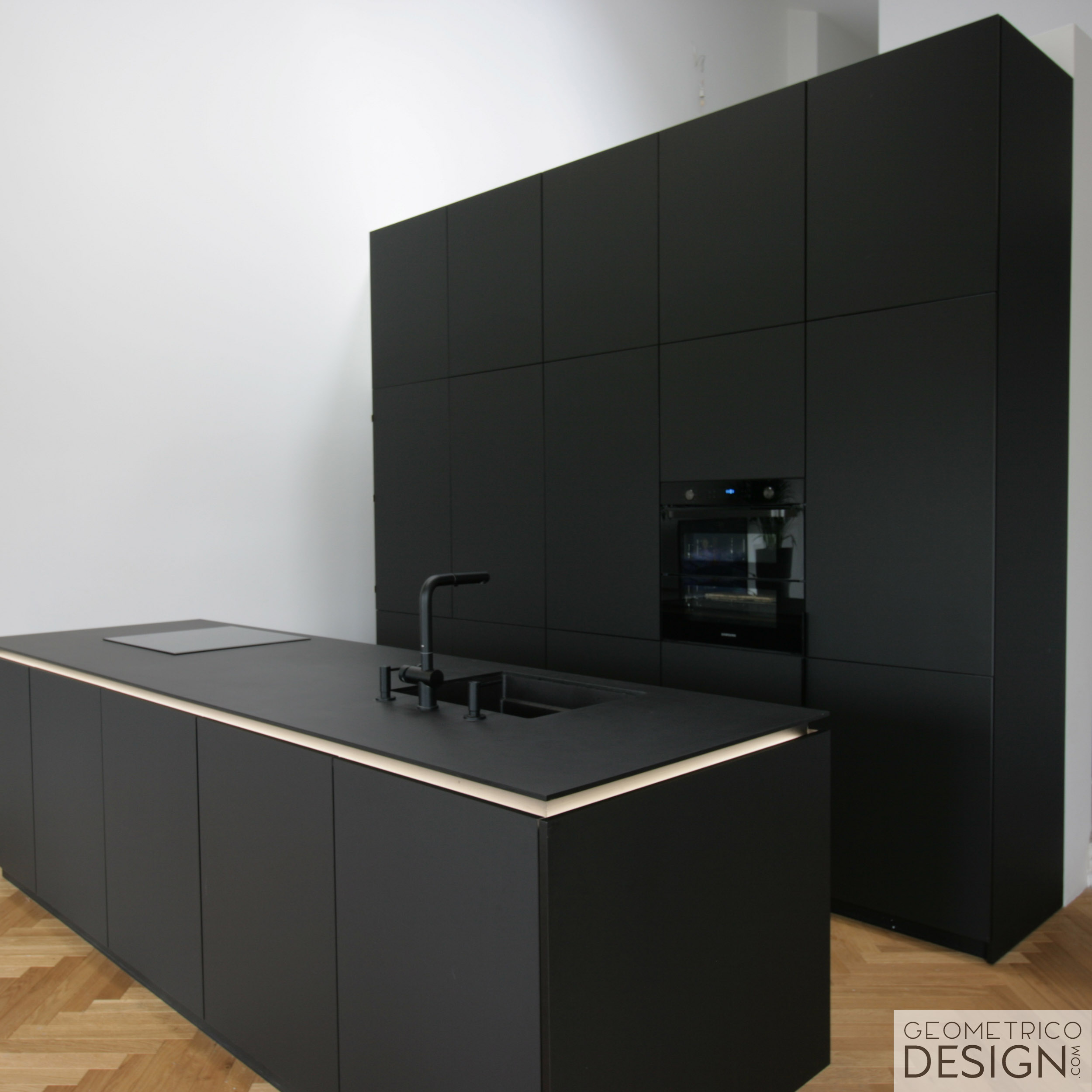 Czarna kuchnia z wyspą