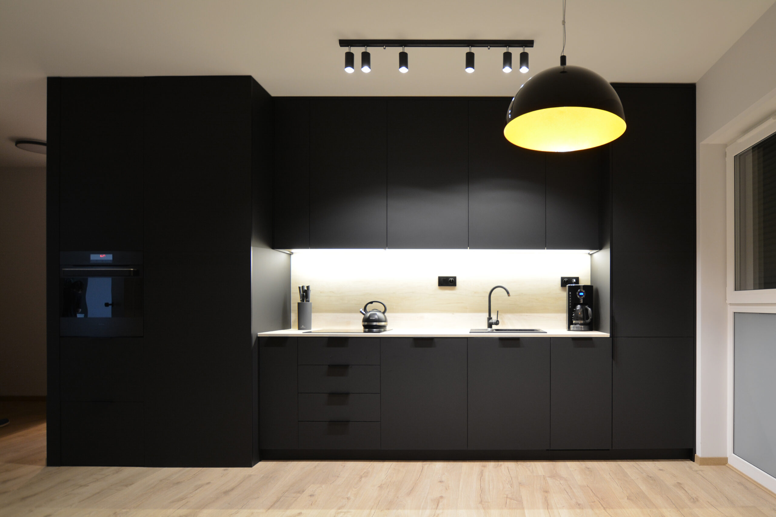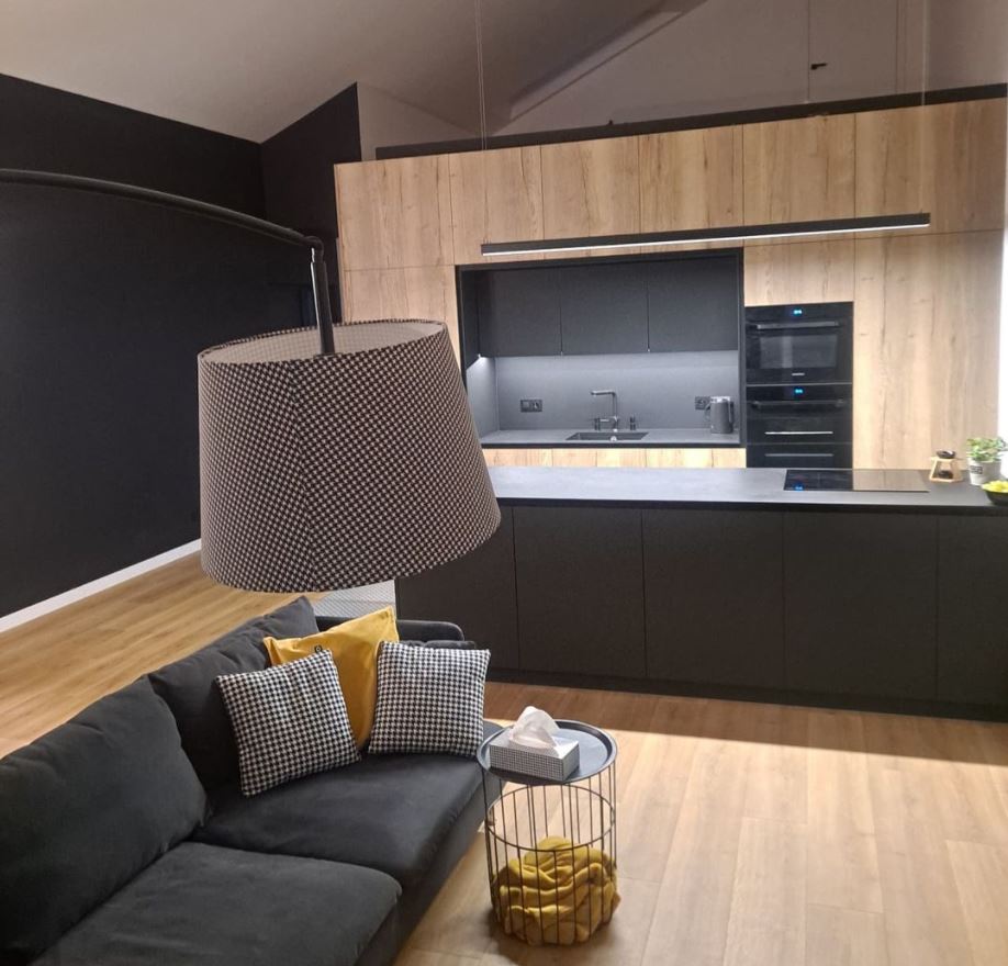 Czarna kompaktowa kuchnia