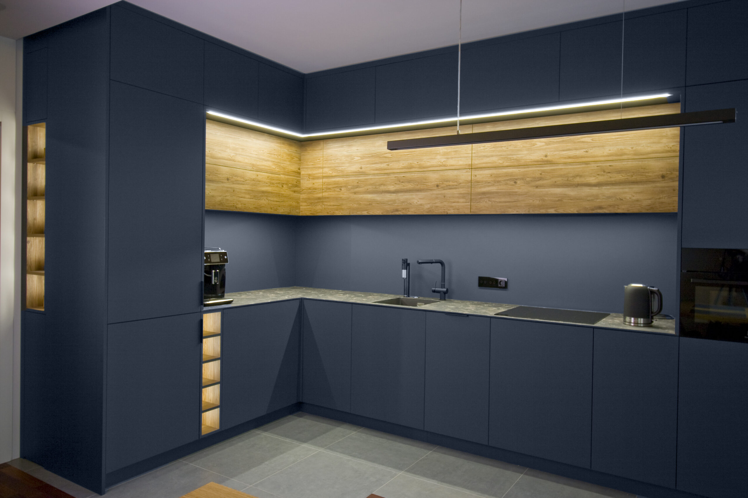 Granatowa matowa kuchnia